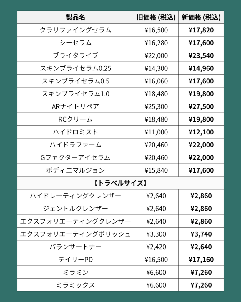 ゼオスキンヘルス 価格改定のお知らせ 2026年2月27日 お知らせ 2026年4月1日より、ゼオスキンヘルスの一部製品について、価格改定がございます。 為替ならびに原材料価格の高騰に伴うもので、製品の成分変更などはありません。 ご迷惑をおかけいたしますが、ご了承頂けますと幸いです。 URL Copied!